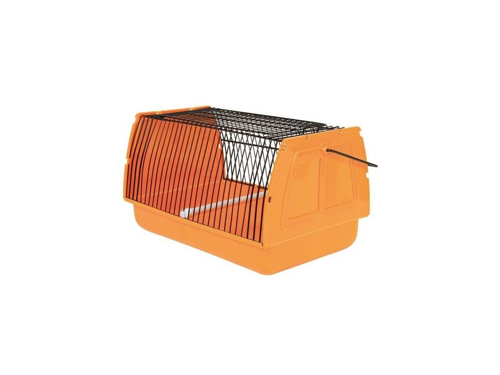 Plastová přepravka s drátěným vrchem pro malé ptáky a jiná malá zvířata. Plastová část je v různých barvách, drátěná část je černá. Ideální pro nošení zvířat k veterináři.